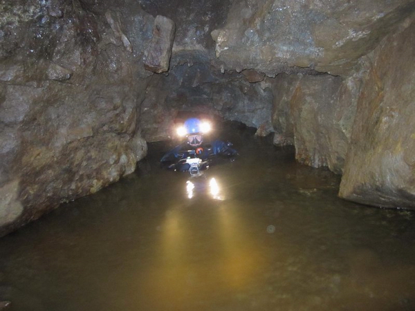 This picture was sent to me by Marc-Andre Dorval of Speleo Club Nibelungen. The club is in the process of digging this sump in Lafleche Cave in Quebec Canada. Currently they have removed debris to three meters below the water level with the hopes of finding virgin passage. The divers name is Donald. Glad to see I am not the only person crazy enough to spend the weekend digging for virgin tunnel. |